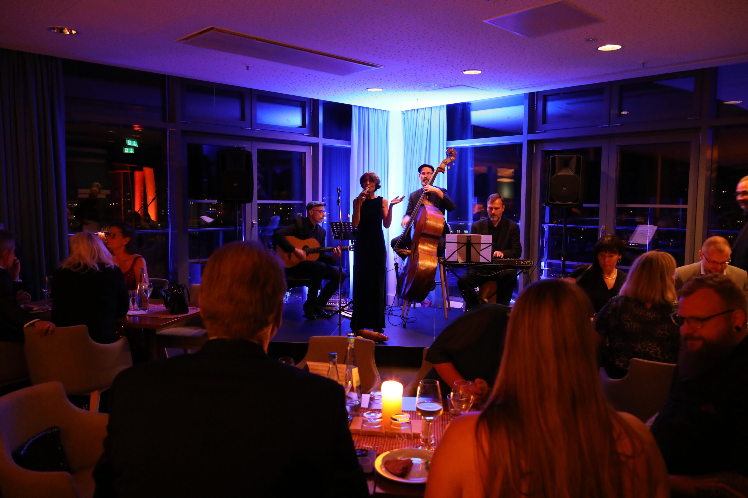 Ball Léger Highlights 2025 Was für eine unvergessliche Ballnacht! Erleben Sie unvergessliche Live-Musik im ScanHotels City mit professionellen Künstlern auf der Bühne.Eine Live-Band spielt auf der Bühne im Hotel während einer musikalischen Veranstaltung, atmosphärisch mit Bühnenlicht.