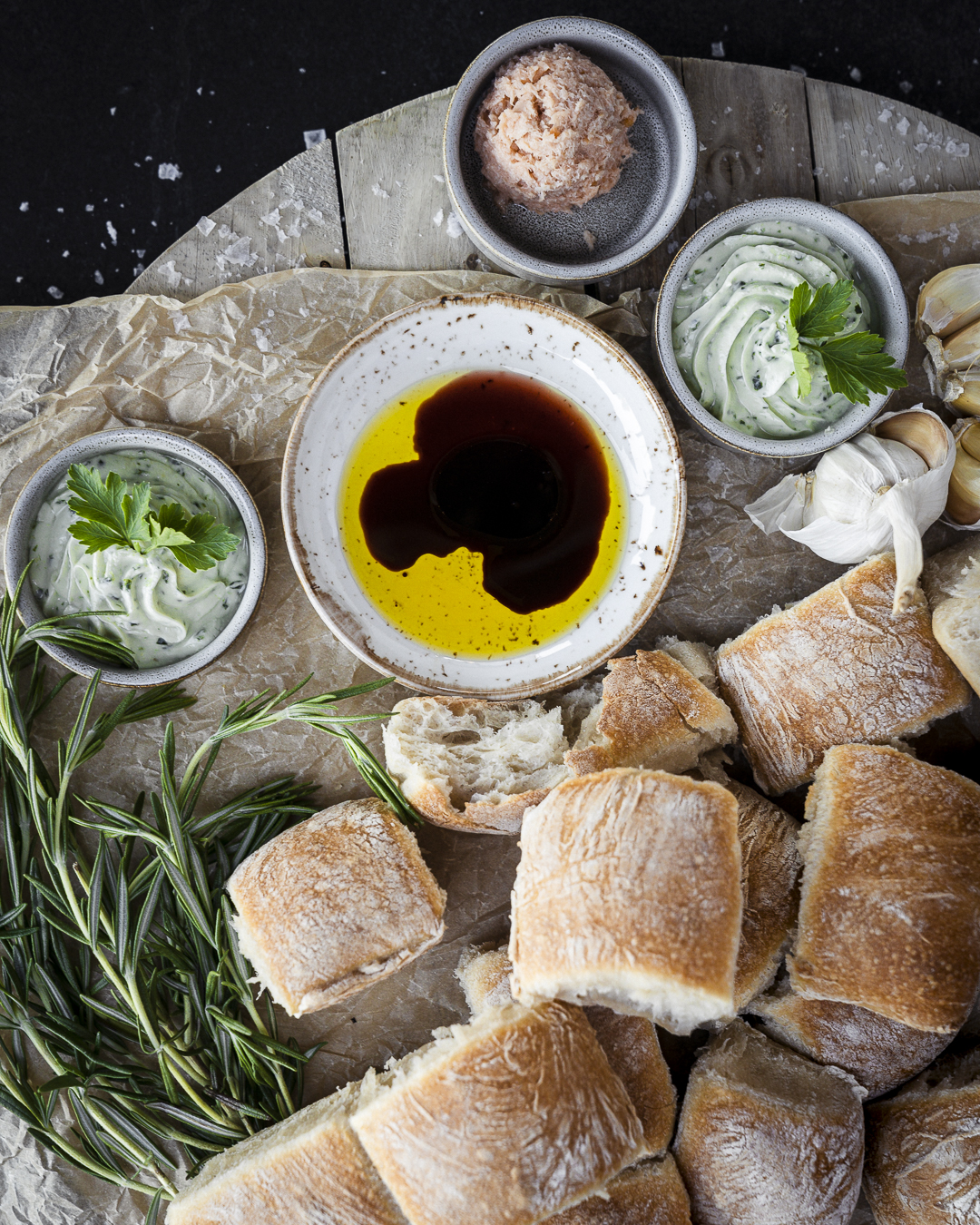 dazu Toppings, Dressings, Salze und Öle
