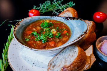 Rustikale Tomatensuppe mit Grissinis und Olivenöl
