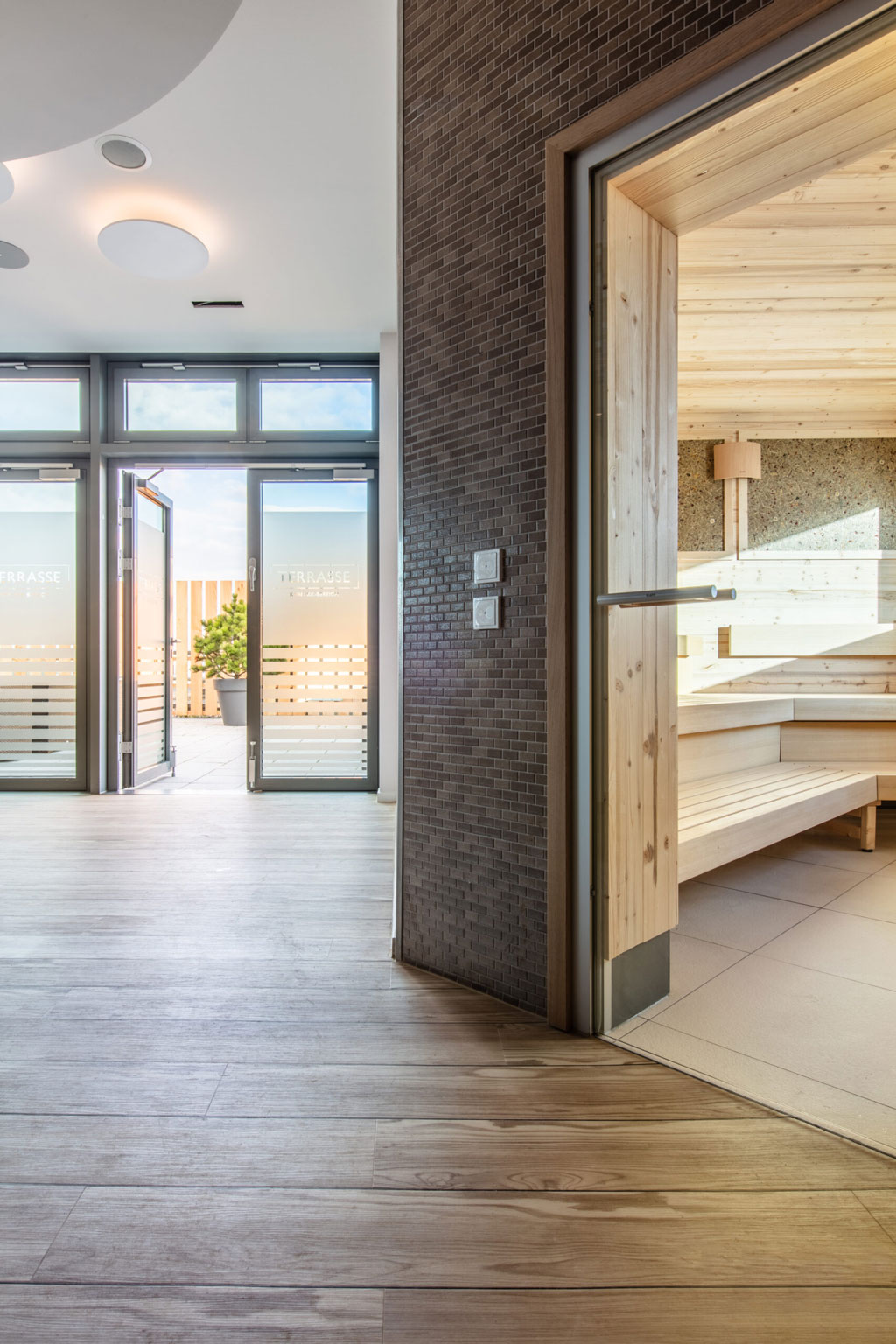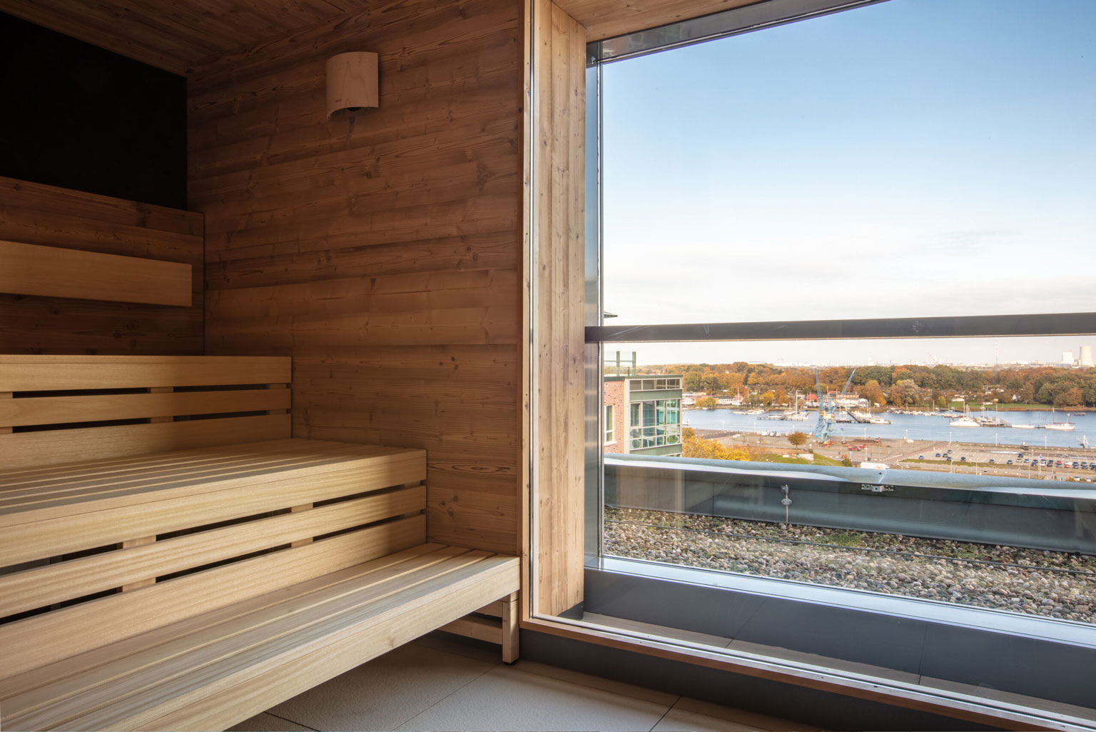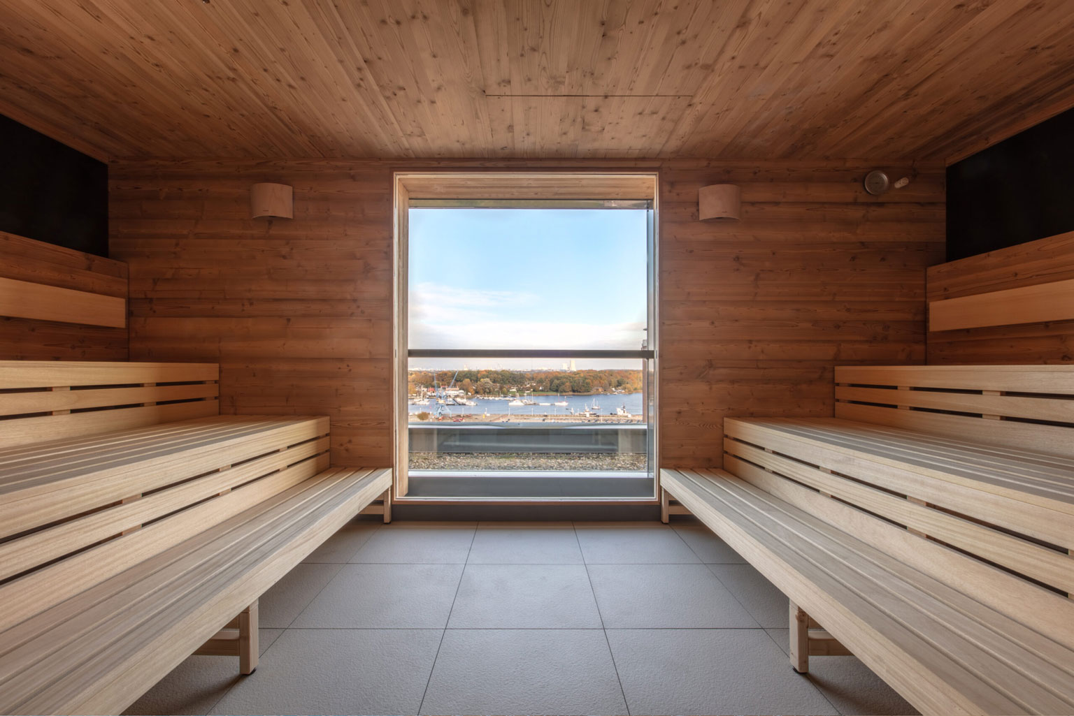 Unsere Saunalandschaft im 7. Stock ist ein Rückzugsort mit Weitblick. Genießen Sie Finnische Sauna (90 °C), Heusauna (60 °C), Dampfbad und Infrarotkabine – und lassen Sie im lichtdurchfluteten Ruheraum oder auf der Terrasse mit Blick über Rostock den Alltag hinter sich. Für echte Entspannung ganz oben.